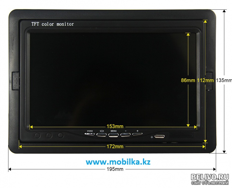 Продам 7” Дюймовый автомобильный монитор с двумя видео входами для камеры заднего вида и DVD, модель 7INCH-DVDRV. Предлагаем приобрести бюджетные 7 дюймовые автомобильные мониторы с минимальным функционалом. Монитор имеет цветной экран с широким углом обзора, позволяет подключать одновременно два устройства передачи видео, например камеру заднего вида и DVD проигрыватель. В комплекте с монитором поставляется рамка для встраивания монитора в подголовник. При поступлении сигнала с камеры заднего вида монитор автоматически переключается на канал камеры. В комплекте с монитором поставляется крепление-держатель для установки на переднюю панель автомобиля, пульт дистанционного управления и комплект кабелей для подключения монитора к питанию автомобиля и приему видео сигналов. Данные мониторы можно использовать не только в автомобилях, как показывает практика, 7 дюймовые мониторы могут пригодиться и на других объектах, их могут использовать на всевозможных стендах, демонстрационных блоках и т.д. Купить 7” Дюймовый автомобильный монитор с двумя видео входами для камеры заднего вида и DVD вы можете в нашем интернет магазине, доставка осуществляется по всему Казахстану как по предоплате, так и с наложенным платежом (оплата при получении). Отправка заказов осуществляется в течении суток с момента подтверждения заказа. Так же Вы можете приобрести этот портативный автомобильный монитор в нашем офисе в г. Алматы, предварительно связавшись с нами по указанным в контактах телефонам или любым другим способом..