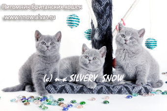 Зайдя к нам на сайт, Вы попадаете в мир голубых британцев! Вы не встретите у нас кошек и котов других цветовых вариаций. Питомник британских кошек Silvery Snow вот уже 19 лет занимается планомерным разведением кошек британской породы исключительно голубого окраса с помощью новейших исследований в области генетики. Наши питомцы не несут генетических болезней, а значит передают своим деткам все лучшие породные качества. А мы стараемся привить котятам хорошие манеры, повадки. Наши британские котята с детства уже приучены к лотку, очень чистоплотны, умны, едят самостоятельно разнообразную пищу. Записаться на понравившегося котенка можно на нашем сайте