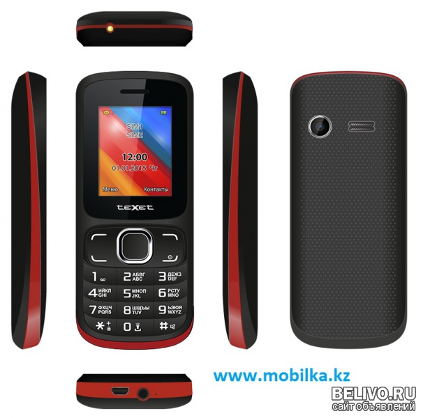 Продам простой 2-х симочный телефон, ID0026Наш интернет-магазин предоставляет Вам возможность приобрести простой 2-х симочный телефон за символическую цену. Данная модель имеет Li-ion аккумулятор с емкостью 600 mAh, которого хватает без малого на 1,5-2 суток активного пользования. Поддерживает стандартные функции коммуникаций: SMS, GSM 900/1800. Простой 2-х симочный телефон имеет приятный и красивый дизайн, корпус выполнен из пластика черного цвета, по контуру проходит яркая каемка красного цвета, которая подчеркивает современность данного телефона. Вес простого 2-х симочного телефона составляет всего 60 грамм, а толщина 1,5 сантиметра. Также телефон поддерживает попеременный режим работы сим карт. Дисплей с диагональю 1,77 дюйма имеет разрешение 220 х 176 пикселей. Поддерживаются музыкальные форматы MP3, AAC, видеоформаты 3GP, MP4, виброзвонок, а также FM-радио. На задней панели располагаются фото/ видео-камера и мощный динамик. Клавиатура простого 2-х симочного телефона выполнена в классическом стиле, кнопки и цифры достаточно крупные, рельефные, что позволяет набирать все наощупь. Телефон поддерживает функцию Bluetooth, а с помощью microSD есть возможность расширить память до 16Gb, также имеется выход 3,5мм под мини-джек, который позволяет прослушивать музыку, FM-радио или просматривать видео в наушниках. Встроенный фонарик включается нажатием одной кнопки. Данный телефон производится на территории Китая под брендом «Texet» для рынков стран СНГ. Телефон сертифицирован на территории стран таможенного союза, имеет гарантию сроком на 12 месяцев, обслуживается в официальных сервисных центрах компании Texet. Купить простой 2-х симочный телефон вы можете в нашем интернет магазине, доставка осуществляется по всему Казахстану как по предоплате, так и с наложенным платежом (оплата при получении). Отправка заказов осуществляется в течении суток с момента подтверждения заказа. Так же Вы можете приобрести этот простой 2-х симочный телефон в нашем офисе в г. Алматы, предварительно связавшись с нами по указанным в контактах телефонам или любым другим способом.