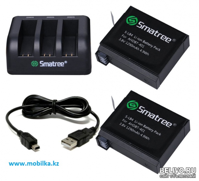 Продам комплект аккумуляторов для GoPro HERO 4 Lite, Smatree® SM-004. Представляем комплект резервных батарей для GoPro HERO 4 Lite от лицензионного производителя аксессуаров для GoPro, компании Smatree®. Емкость резервных батарей составляет 1290 мАч. Производятся батареи исключительно из качественных японских элементов питания. Производитель дает 3-х летнюю гарантию на свои аккумуляторы. Так же в комплекте с аккумуляторами поставляется быстрое 3-х канальное зарядное устройство. Предназначено для зарядки от 1 до 3 аккумуляторов одновременно. Зарядное устройство имеет индикаторы заряда для каждой батареи. Так же в комплект входит USB кабель для подключения зарядки к ноутбуку или в сеть. Купить данный комплект аккумуляторов для GoPro HERO4 вы можете в нашем интернет магазине, доставка осуществляется по всему Казахстану как по предоплате, так и с наложенным платежом (оплата при получении). Отправка заказов осуществляется в течении суток с момента подтверждения заказа. Так же Вы можете приобрести этот комплект аккумуляторов в нашем офисе в г. Алматы, предварительно связавшись с нами по указанным в контактах телефонам или любым другим способом...