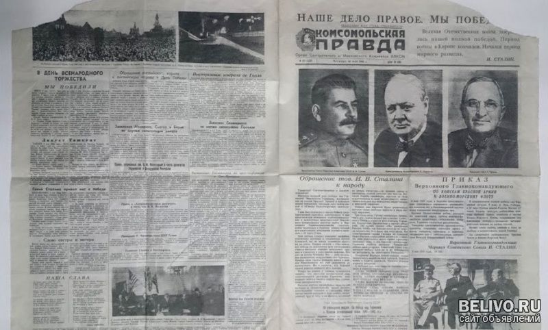 Газета комсомольская правда 10 мая 1945 год оригинал 100%
