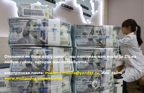 Свяжитесь с нами сейчас в кредитном союзе Midland за лучший и легкий доступный кредит от 7 000 евро до 30 миллионов всего за 2%. Даже если банк отклонит вас, мы поможем вам получить любую сумму кредита, которую вы желаете в течение 6 часов после подачи заявления , Вы получаете кредит с гарантией, в зависимости от вашего местонахождения, свяжитесь с нами по электронной почте; Midland.credits@yandex.ru сегодня или WhatsApp наши клиенты: +27618324586 ИЛИ Применитесь через наш ВЕБ-САЙТ: midlandcg.yolasite.com