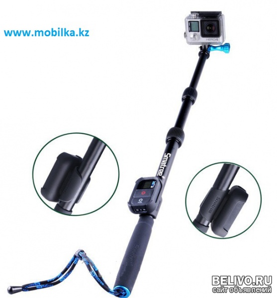Продам алюминиевый монопод для экшн камер GoPro Hero 4/3+/3/2/1, SJcam, модель SmaPole S2. SmaPole S2 — алюминиевый монопод для экшн камер производства Smatree. Этот монопод по сути является аналогом SmaPole S2С с той лишь разницей, что изготовлен не из карбона, а из прочного и легкого алюминиевого сплава. Вес монопода без камеры составляет 310 грамм. Длина алюминиевого монопода также легко настраивается в диапазоне 40-102 см благодаря телескопической конструкции и фиксирующим гайкам. Чуть выше рукояти располагается держатель для Wi-Fi пульта. Wi-Fi пульт позволяет управлять фото-/видео-съемкой дистанционно, но он не входит в стандартную комплектацию и приобретается отдельно. Алюминиевый монопод SmaPole S2 совместим с GoPro Hero 4/3+/3/2/1 и Sjcam. Рукоятка алюминиевого монопода SmaPole S2 изготовлена из прорезиненной втулки и обеспечивает удобный обхват, также в нижней части рукояти имеется специальный ремешок, что сводит к минимуму возможность уронить монопод SmaPole S2 из рук во время съемки. Монопод исполнен в черном цвете. Также в комплектацию входит специальный алюминиевый ключ для затяжки болтов.