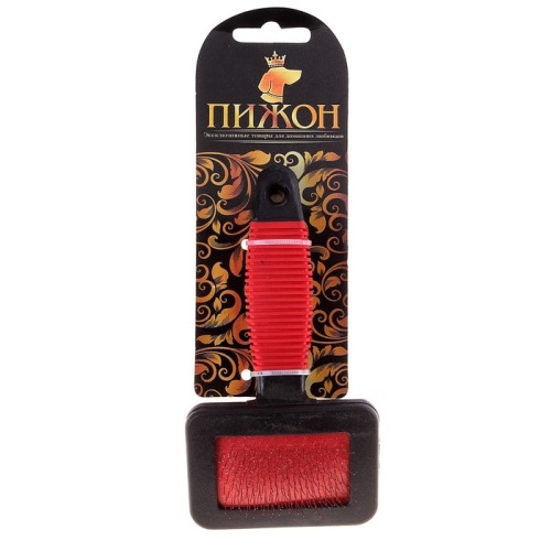 Пуходерка щетка с резиновой ручкой 7 х 14 см для животных 47010