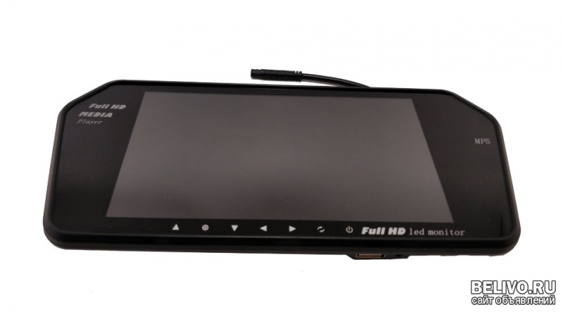 Продам 7" Дюймовый автомобильный монитор-зеркало заднего вида с поддержкой USB/MicroSD накопителей и камеры заднего вида, ID1107. Предлагаем вам купить 7" дюймовый автомобильный монитор, он же зеркало заднего вида. Монитор крепится на штатное зеркало заднего вида, удобными регулируемыми зажимами на пружинах. Основное достоинство данной модели - большой Full HD 7" дюймовый цветной экран. Монитор-зеркало поддерживает карты памяти MicroSD до 32 гб и USB-флеш-накопители до 32Гб, благодаря чему зеркало-монитор можно использовать как видео/аудио плеер, просматривать фото и другую мультимедийную информацию. Также монитор имеет собственный динамик, который позволит насладиться просмотром и прослушиванием клипов, фильмов и тд. Монитор-зеркало управляется при помощи сенсорных кнопок на нижней части корпуса или с пульта дистанционного управления, поставляющегося в комплекте с монитором. Сам монитор подключается и питается от бортовой сети автомобиля. Монитор имеет два AV входа, один для вашего DVD проигрывателя, другой для камеры заднего вида. При включении задней передачи активируется камера заднего вида и монитор автоматически переключается на нее. При отсутствии видеосигнала с камеры или магнитолы, или с SD карты / USB-флеш-накопителя, монитор находится в отключенном состоянии и представляет из себя обычное зеркало заднего вида. Данный автомобильный монитор-зеркало оснащен 7" дюймовым Full HD, TFT ЖК-дисплеем с разрешением 1024х600 пикселей и сенсорными кнопками на лицевой части устройства (7 кнопок). Корпус монитора изготовлен из пластика, лицевая же часть монитора выполнена из зеркального стекла. На одном из торцов расположились порты для SD карт памяти и USB-флэш-накопителей. На задней части монитора, находится AV выход, динамик и регулируемые зажимы на пружинах.