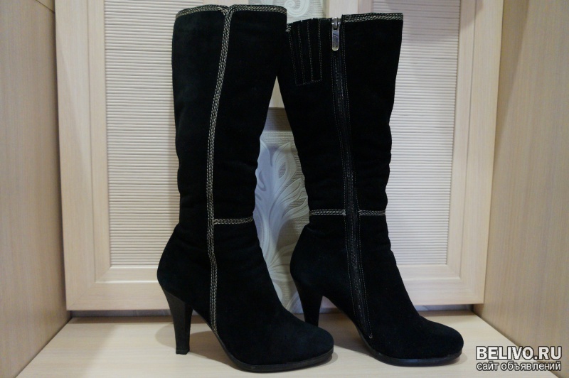Продам женские замшевые зимние сапоги(цигейка).В хорошем состояние.Каблук 8см,голенище 25см.Размер 35.Торг.