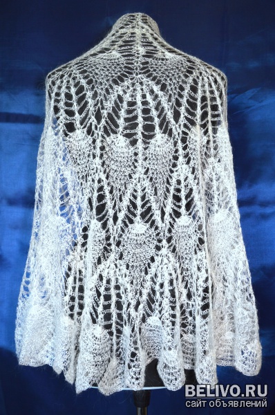 Ручное прядение, и ручная вязка. Состав:козий пух 85% шелк 15% Пуховая пелерина прекрасно сочетается, с любым видом одежды, и вечерними нарядами.Она подойдет под любой сезон и погоду.В жаркое время воздушное кружево свободно пропускает воздух, а в холод козий пух сохранит тепло вашего тела. Пуховое руно дает сухое тепло, препятствует перегреву,и действует,как экологический фильтр.Пелерина красивая, эффектная, мягкая,теплая, нежная,очень нарядная, утеплит, и украсит хозяйку