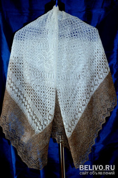 Продаётся красивейшая оренбургская эксклюзивная паутинка ручной работы, с сочетанием серого, и белого пуха,связанная, из экологически чистого сырья козьего пуха, по вековым традициям которые передаются, из поколения, в поколение. Размер: 135*135 см. Пух прядётся,в ручную веретеном, очень тонко. Поэтому изделия получаются лёгкими и воздушными , в тоже время они тёплые, нежные, и уютные.Эти уникальные изделия содержат 85% козьего пуха и 15% шёлка. Они не вызывают аллергию.Весят от 85 до 100 граммов. Пуховая паутинка прекрасно сочетается, с любым видом одежды, и вечерними нарядами.Она подойдет под любой сезон,и погоду.В жаркое время воздушное кружево свободно пропускает воздух, а в холод козий пух сохранит тепло вашего тела.Пуховое руно дает сухое тепло, препятствует перегреву, и действует ка экологический фильтр. Паутинка утеплит, и украсит свою хозяйку. Благодаря тонкой вязке паутинку можно пропустить через обручальное кольцо.