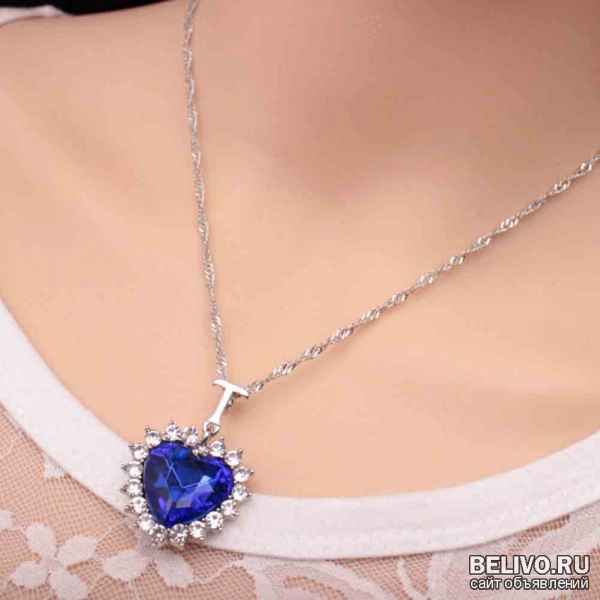 Цвет: синий, тип: цепочка, стиль: классический, рисунок: сердце, материал-ювелирный сплав. Синий кристалл украшенный маленькими сверкающими кристаллами в виде снежинок, длина цепочки-45 см, размер: 5x2,3 см. Вид цепочки: цепочка звеньевая, состояние: новое, пол: для девушек