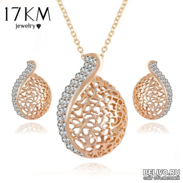 Тип металла: цинковый сплав, пол: для женщин, материал: Alloy. Тип изделия: ювелирный набор, стиль: модный, состояние: новое. В комплекте: Ожерелье, серьги. Золотистого цвета, украшенный маленькими сверкающими кристаллами.