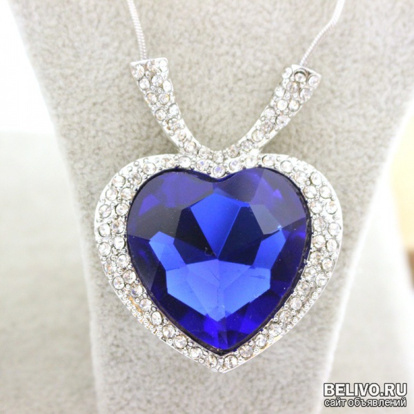 Размер: 38x45 мм, материал-ювелирный сплав, фирменные кристаллы. Цвет: синий, длина цепочки-50 см. Кулон украшен красивым синим кристаллом в виде сердца. Синий кристалл окружён маленькими сверкающими кристаллами, состояние: новое. В синем бархатном мешочке