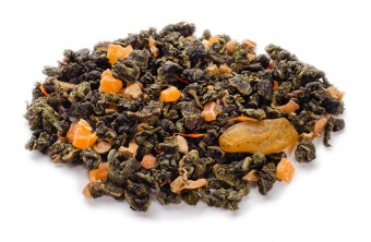 Зеленый чай с кусочками спелой груши, сладким изюмом, кубиками тропического ананаса, яркими лепестками сафлора и насыщенным сладко-фруктовым ароматом.