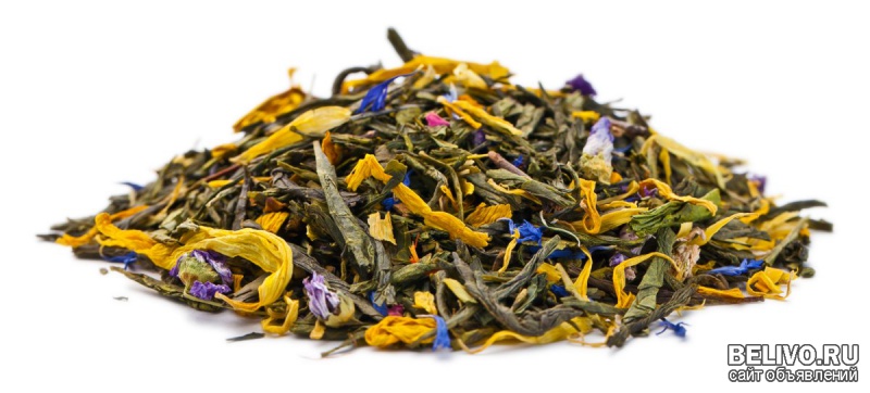 Китайский чай сенча с добавлением лепестков подсолнечника, роз и василька и нежным ягодным ароматом.