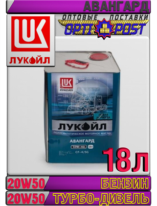 Полусинтетическое моторное масло ЛУКОЙЛ АВАНГАРД 20W50 18л Арт.:L-074 (Купить в Астане). ЛУКОЙЛ АВАНГАРД SAE CF-4/SG - универсальное высококачественное всесезонное моторное масло, предназначенное для эксплуатации в высокооборотных четырехтактных тяжело нагруженных атмосферных и турбированных дизельных двигателей грузовых и легковых автомобилей отечественного и зарубежного производства, а также высокофорсированных безнаддувных бензиновых двигателей. Рекомендован для автомашин марок: КАМАЗ, УАЗ, ЗИЛ, МАЗ, УРАЛ, ПАЗ, ГАЗ. Масло изготавливается на основе высокоочищенных минеральных и современных синтетических базовых масел с использованием тщательно сбалансированного пакета присадок. Масла ЛУКОЙЛ АВАНГАРД SAE выпускаются в классах вязкости SAE 10W-30, 10W-40, 15W-40 и 20W-50. Одобрено: ПАО "КАМАЗ" Euro-2 Соответствует требованиям: API CF-4/SG Товар сертифицирован.. Подробности на сайте: http://postavki.website/