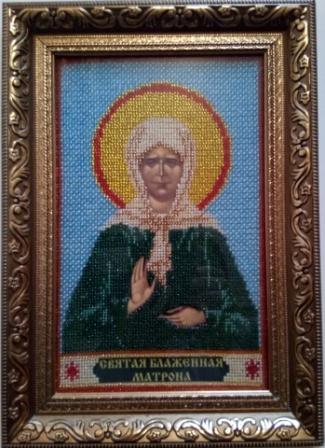 Икона "Матрона Московская", вышивка бисером. Размер 25х20 см.