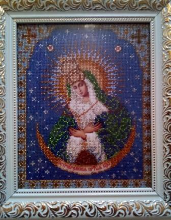 Икона "Богоматерь Остробрамская", вышивка бисером. Размер 25х25 см.