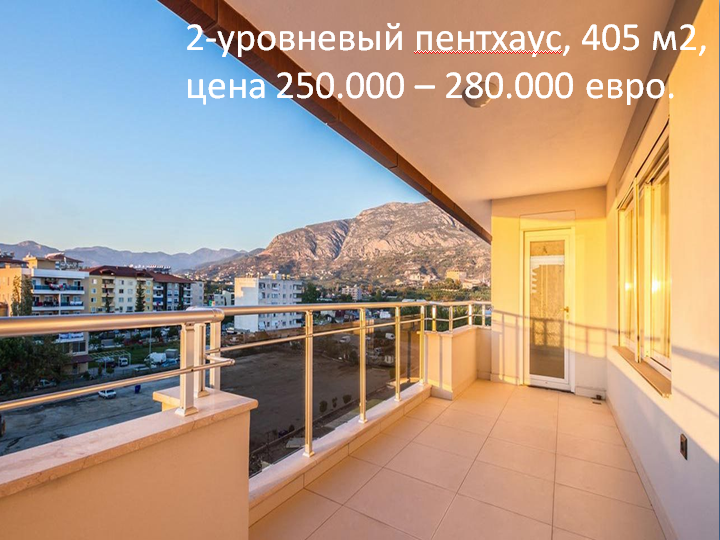 Они занимают два верхних этажа нового жилого комплекса, который находится в самом центре района Махмутлар и всего в 200 метрах от Средиземного моря!