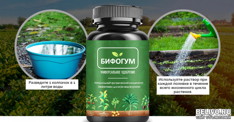БИФОГУМ - это натуральное органическое удобрение, которое содержит 30 природных биологически активных ингредиентов, витаминов и микроэлементов. БИФОГУМ безопасен для окружающей среды и подходит для всех видов культур, выращиваемых в России. Эффективно восстанавливает почву и защищает от болезнетворных растений, грибков и вредных микроорганизмов. В результате применения натурального удобрения процесс созревания овощей и фруктов ускоряется, а урожайность с одного и того же участка повышается минимум в 2 раза.