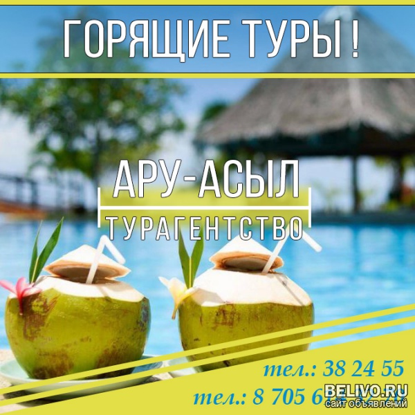 Турагенство "Ару-Асыл" предлагает ТУРЫ во все уголки мира! Популярные курорты. Поможем с выбором.