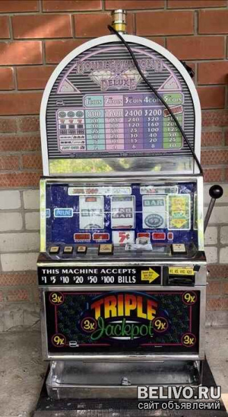 Игровой автомат Однорукий бандит , от компании IGT, редкий, раритетный экземпляр, в рабочем состоянии , настроен на работу с 5 рублевыми монетами, 100 штук в комплекте, с тумбочкой