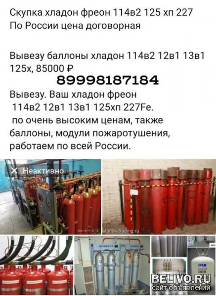 Предприятие закупает и утилизирует баллоны, галлоны, модули газового пожаротушения с хладоном и фреоном 114b2, 12в1, 13b1, используемые в установках пожаротушения.