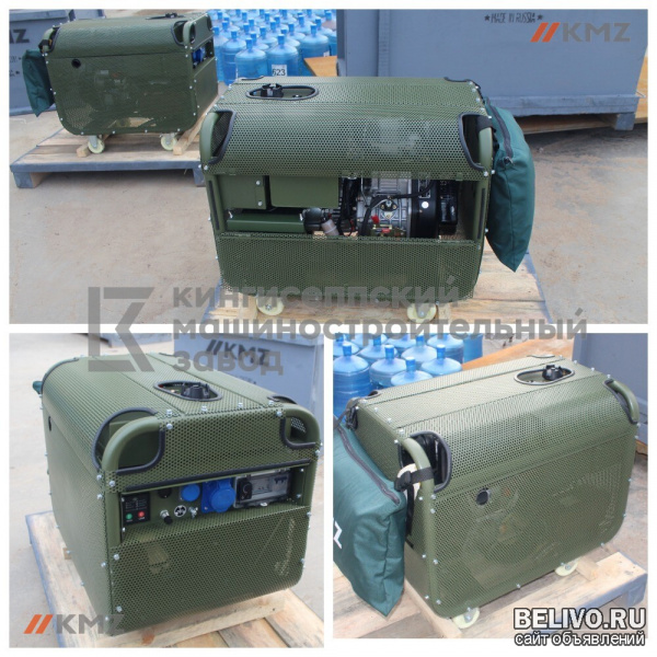 Военно-промышленный холдинг «Кингисеппский машиностроительный завод» отечественный разработчик, производитель и поставщик дизель-генераторных станций воздушного охлаждения АД5.1М номинальной мощностью 5,5 кВт, выходным напряжением 230/380В. Дизель-генератор подобного типа, благодаря своим массогабаритным свойствам 830*580*600 Д*Ш*В мм., 137 кг., обеспечивает удобство и мобильность в эксплуатации и обслуживании. Встроенный топливный бак 14 л. обеспечивает до 7 ч. автономной работы.