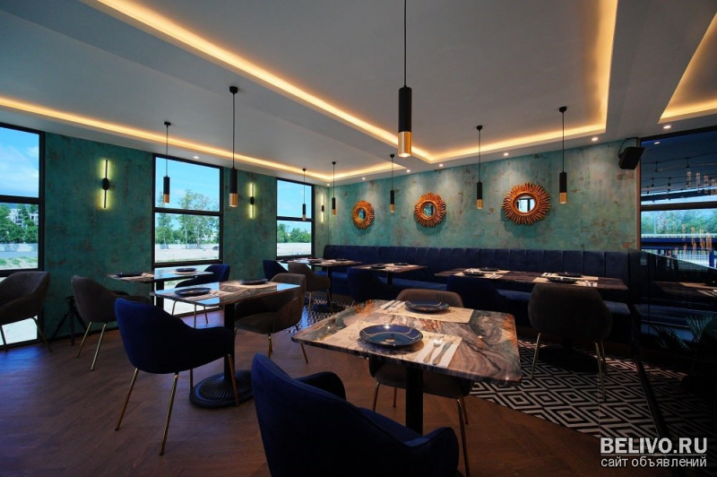 Меню тщательно проработано, включая блюда и напитки, адаптированные к любым предпочтениям. Внутри — мраморные столы и удобная мебель, а фасад украшен зеленью и стеклянными витринами. Ресторан оборудован профессиональной кухней и барной зоной с системой учета FoodStory."